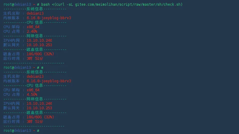 # 输入 q 退出 curl -sL gitee.com/meimolihan/script/raw/master/sh/check.sh | less