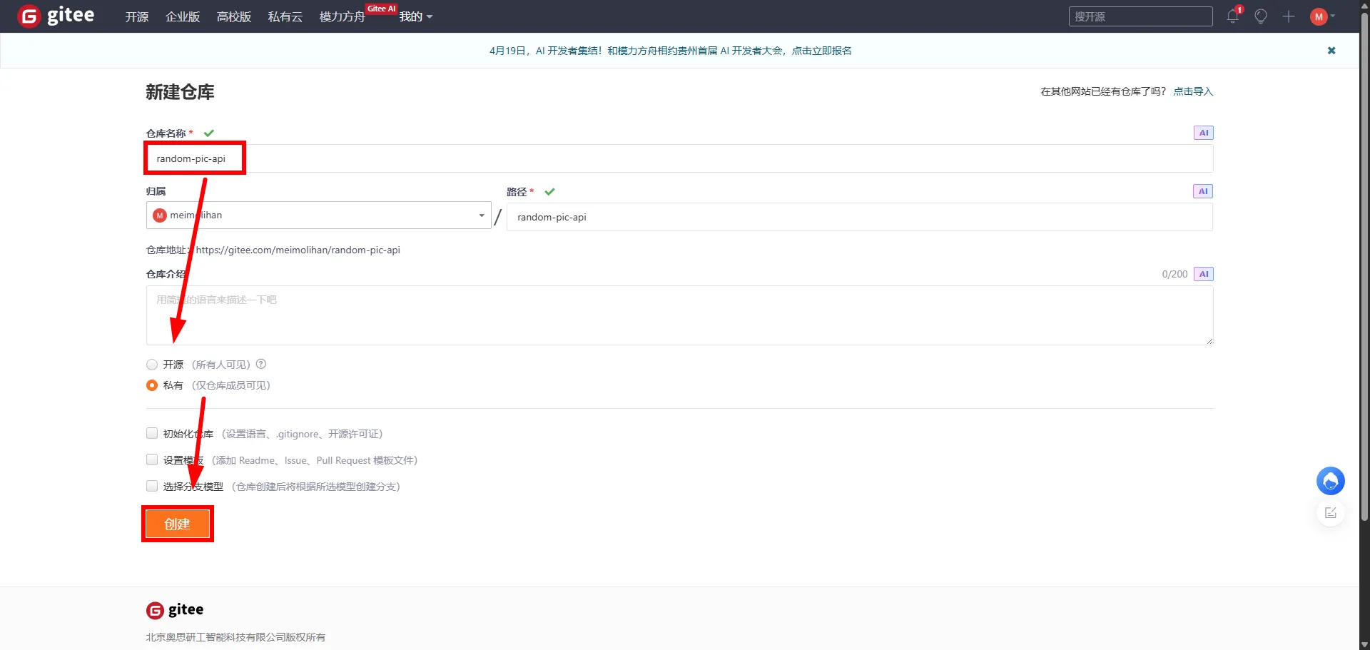 1. Gitee 仓库创建