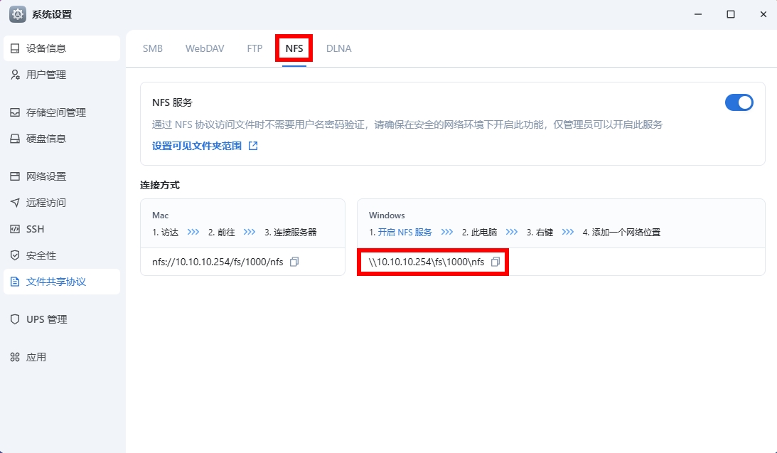 1. 飞牛后台 NFS 配置