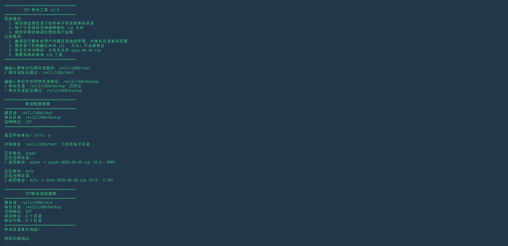 如果您需要修改脚本以满足特定需求(如排除某些目录、添加压缩密码等),可以先将脚本下载到本地,然后进行编辑: